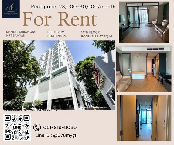 ---> Condo For Rent ' Siamese Surawong ' -- 1 Bedroom 47 Sq.m.