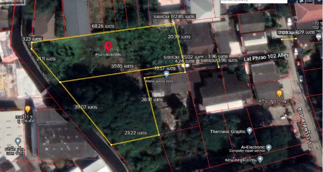 ขายที่ดินลาดพร้าว ซอย 102 ผังที่ดินสีเหลือง คนอยู่อาศัยหนาแน่น ทำเลดี